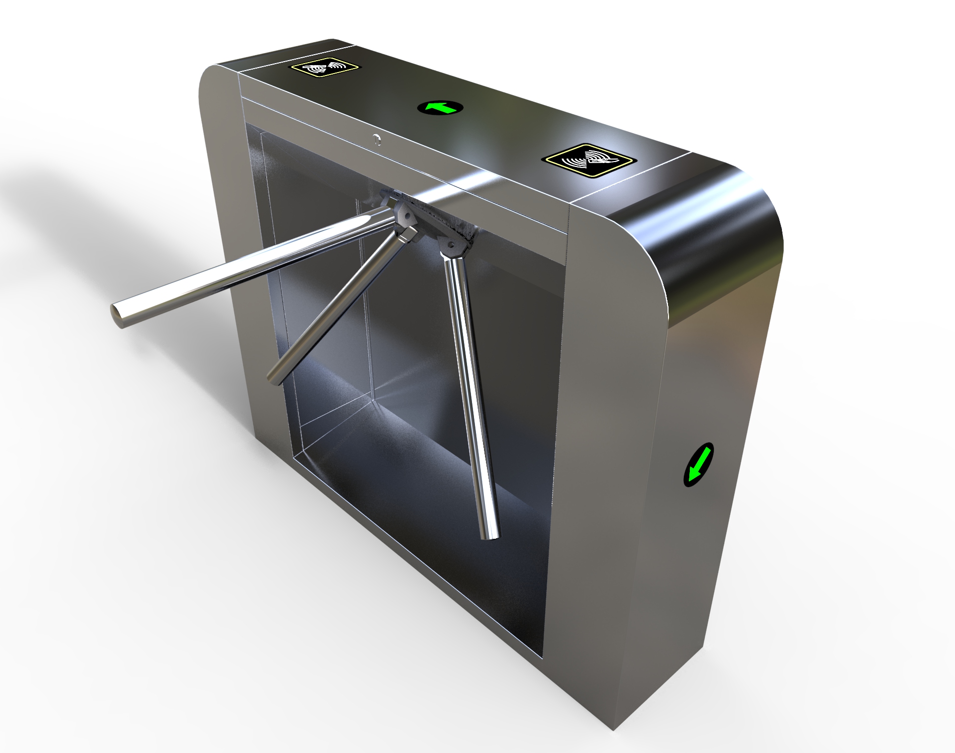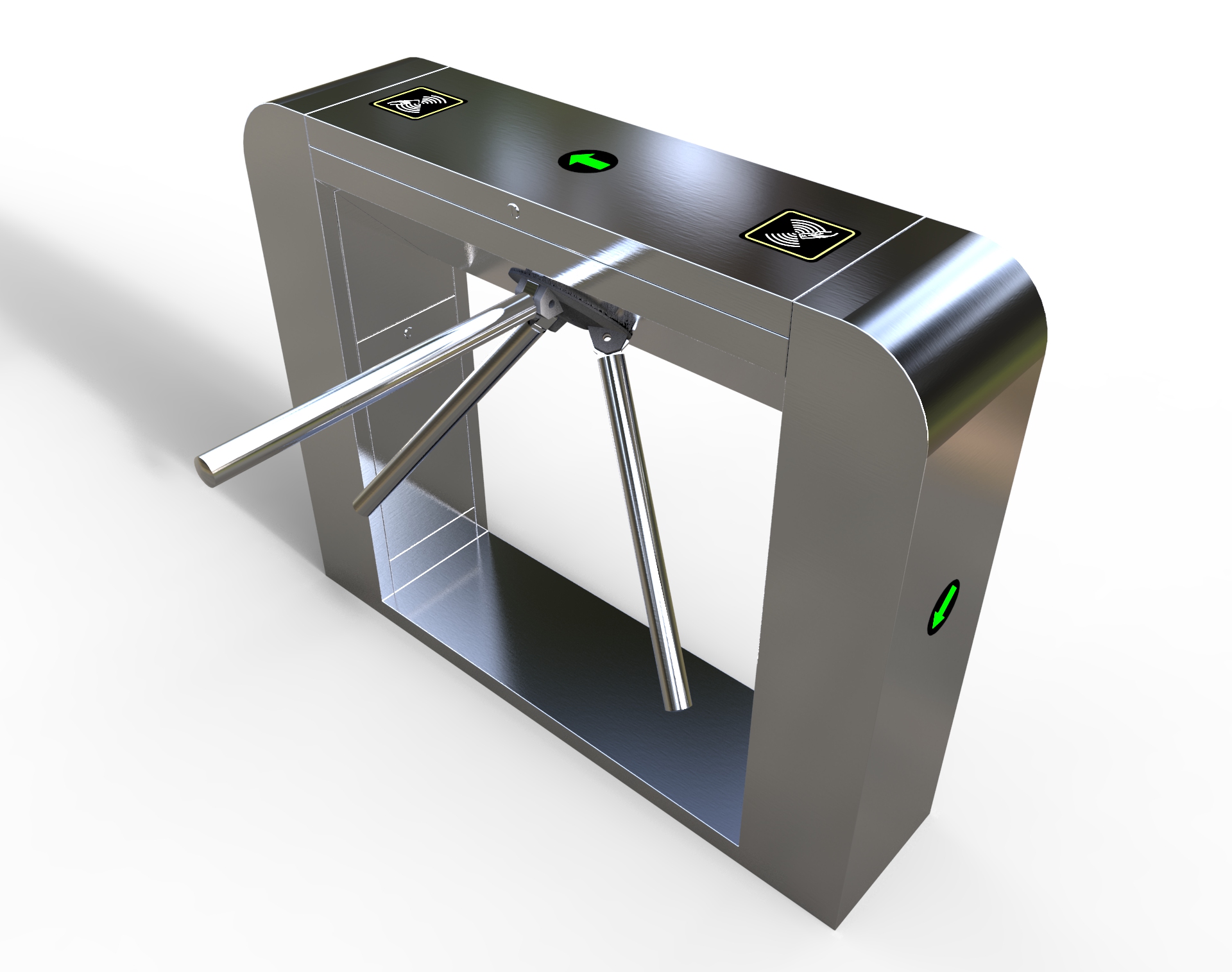 整個三輥閘產(chǎn)品外形采用SUS304不銹鋼板沖壓成型,造型美觀大方,防銹、耐用,能抵抗外力破壞。長方形機箱與通道閘桿構(gòu)成的通道可為出入人員提供有序文明的通行方式,杜絕非法出入,并在緊急情況下快速控制落桿或收桿。