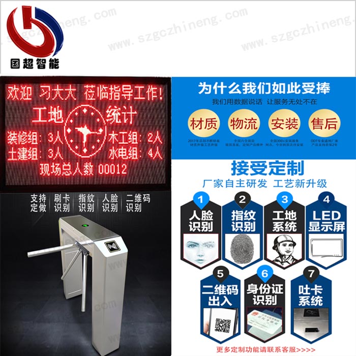● 軟件可做到通道閘刷卡后,在LED屏上顯示刷卡人的姓名,部門,人數(shù)等,顯示出入總?cè)藬?shù),還可在LED屏上顯示歡迎標語、時間等信息,也可顯示各部門的工種,人數(shù);也可以顯示各分包公司的部門人數(shù),定制成滾動或翻頁顯示。