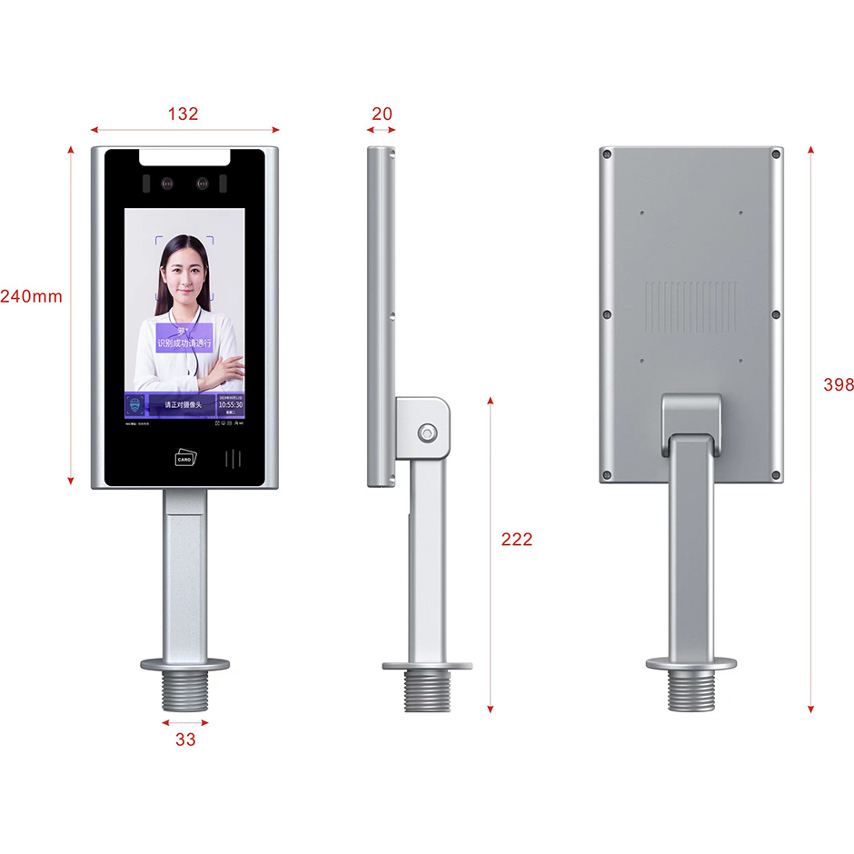 8、機身尺寸:240*132*20mm(長*寬*厚) ; 9.人臉設備終端都帶超寬動態(tài)鏡頭